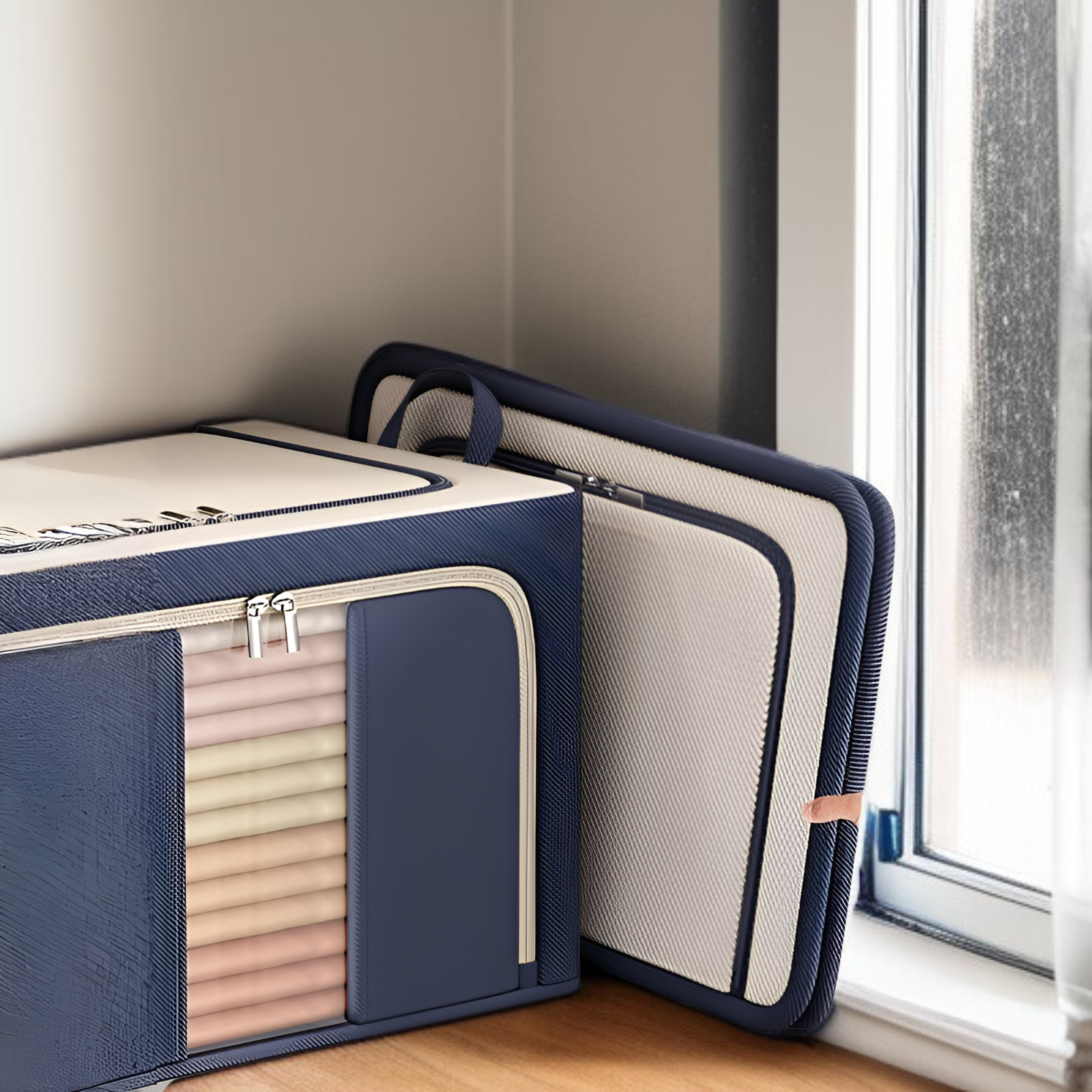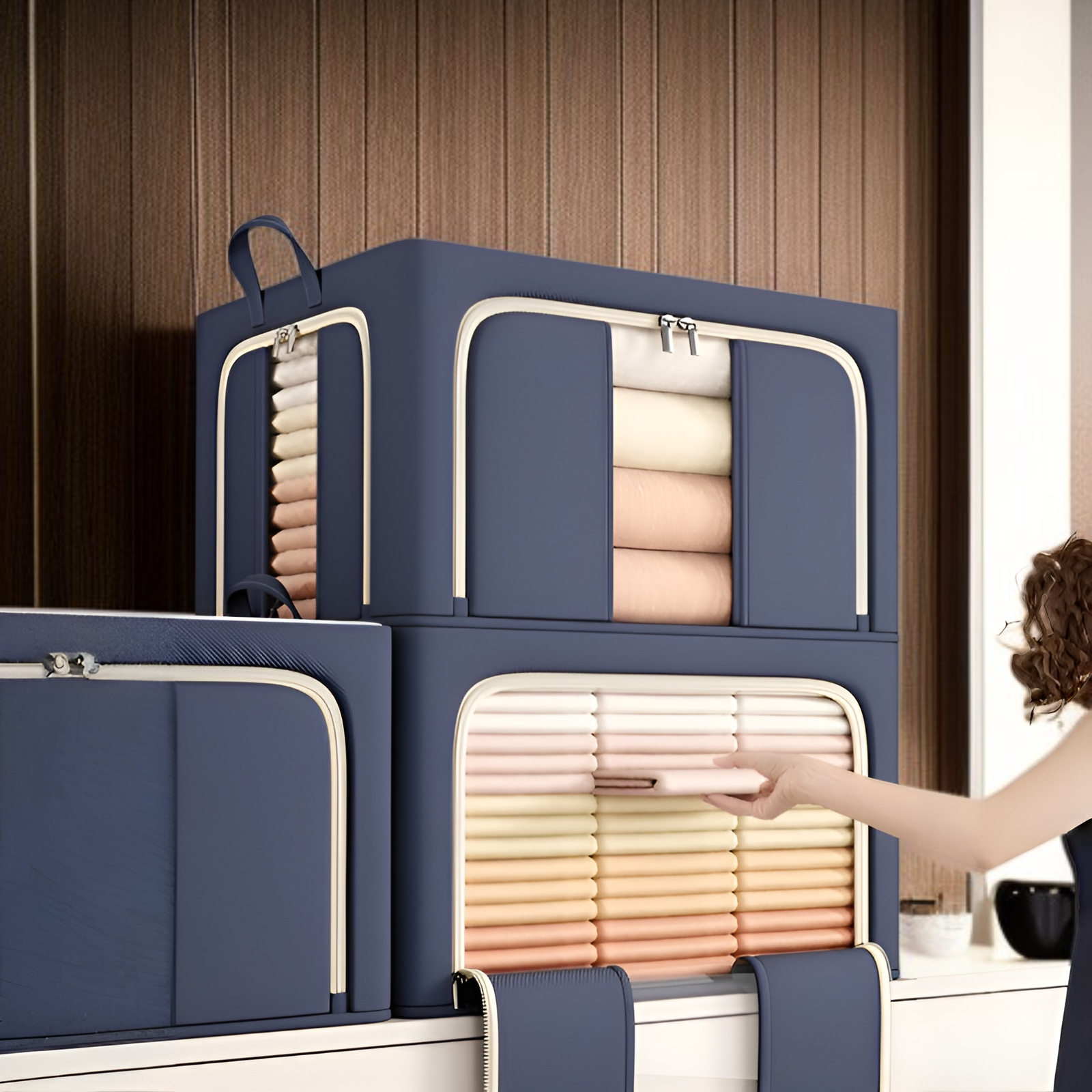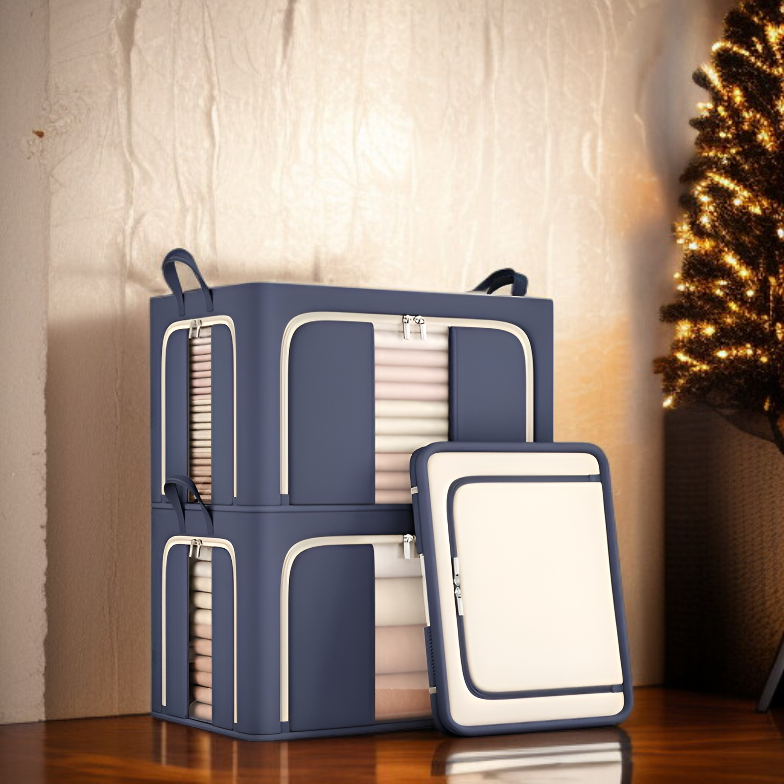 収納ボックス 折りたたみ 衣装ケース 【天面・前面・側面 3方向開閉】 鉄骨フレーム スタッキング 布団収納ケース 衣類 整頓ボックス 中身が見える窓付き 大容量 防塵 防湿 耐荷重 66L/100L